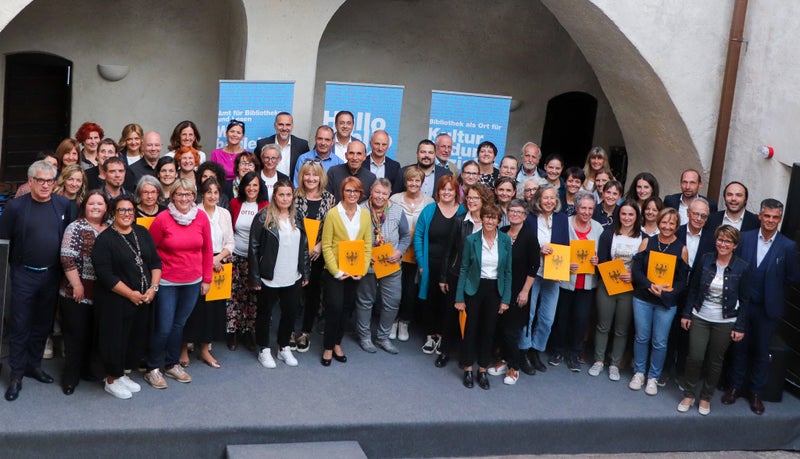 Die Bibliotheksarbeit stand Ende vergangener Woche auf Schloss Maretsch in Bozen im Brennpunkt: Landesrat Philipp Achammer verlieh 33 Öffentlichen Bibliotheken, davon 24 Hauptsitzen und neun Zweigstellen den Qualitätsnachweis. Diese Bibliotheken hatten im Zeitraum von Oktober 2021 bis September 2022 ein Qualitätssicherungsverfahren (Audit) erfolgreich abgeschlossen. Das Zertifikat ist drei Jahre lang gültig.