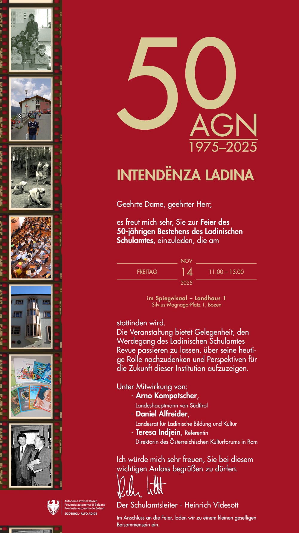 "50 Jahre Ladinisches Schulamt bedeuten 50 Jahre Brückenbau zwischen Sprachen, Kulturen und Menschen – mit gelebter Inklusion und einer engen Zusammenarbeit mit dem deutschen und italienischen Schulamt. So konnten die ladinische Sprache und Kultur wachsen und sich weiterentwickeln – ein lebendiges Beispiel für Bildung mit Herz und Weitblick", führte der Landesrat für Ladinische Bildung und Kultur Daniel Alfreider aus.