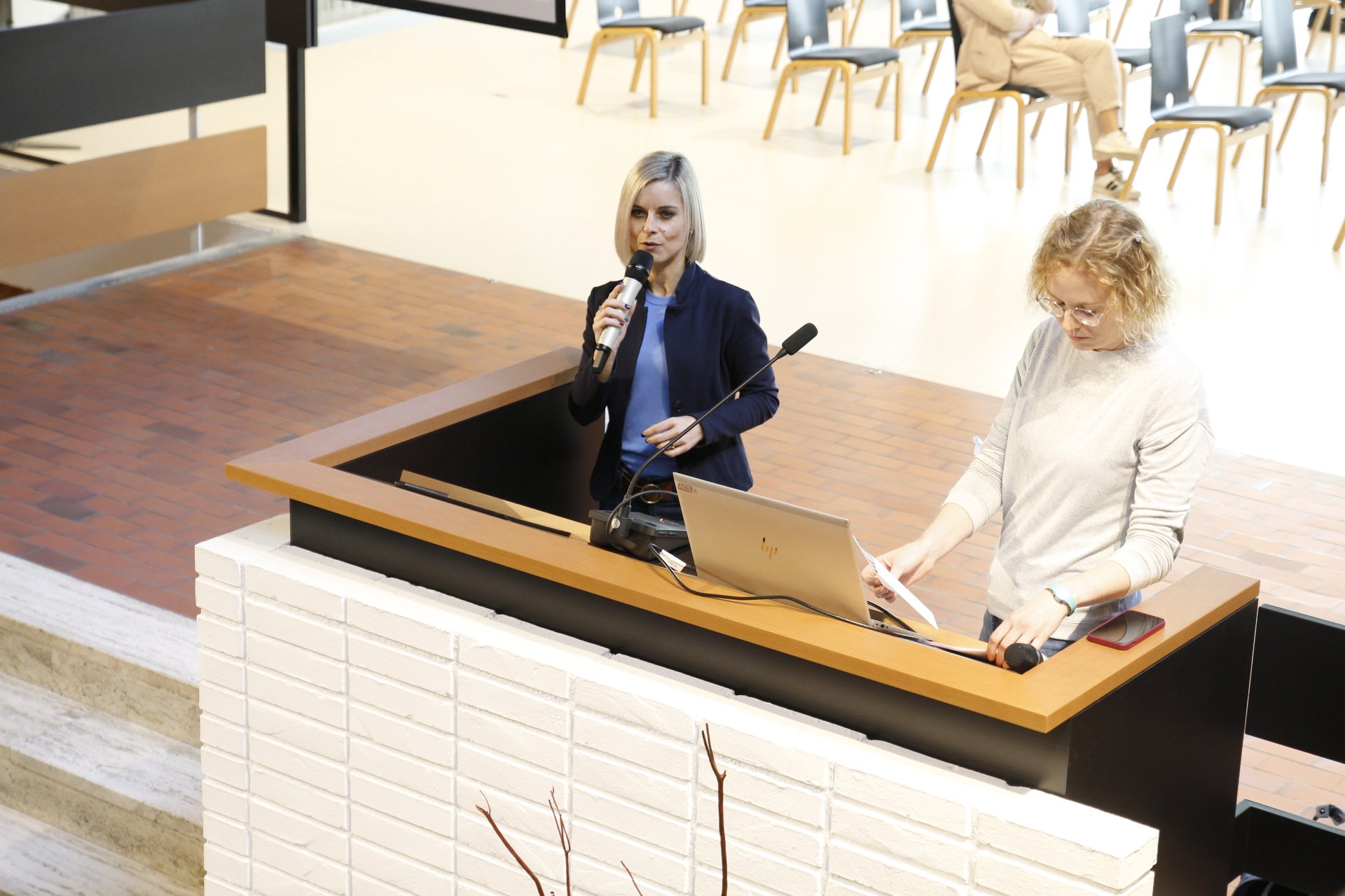 - Claudia Rieder (Mittelschule Dr. Josef Röd, Schulsprengel Bruneck 1) und Hanna Waldthaler (Mittelschule Adalbert Stifter, Schulsprengel Bozen/Gries) (v.l.) führten in das Thema Podcasts im Unterricht ein. (Foto: LPA/Verena Hilber) » [IMG 2 MB]