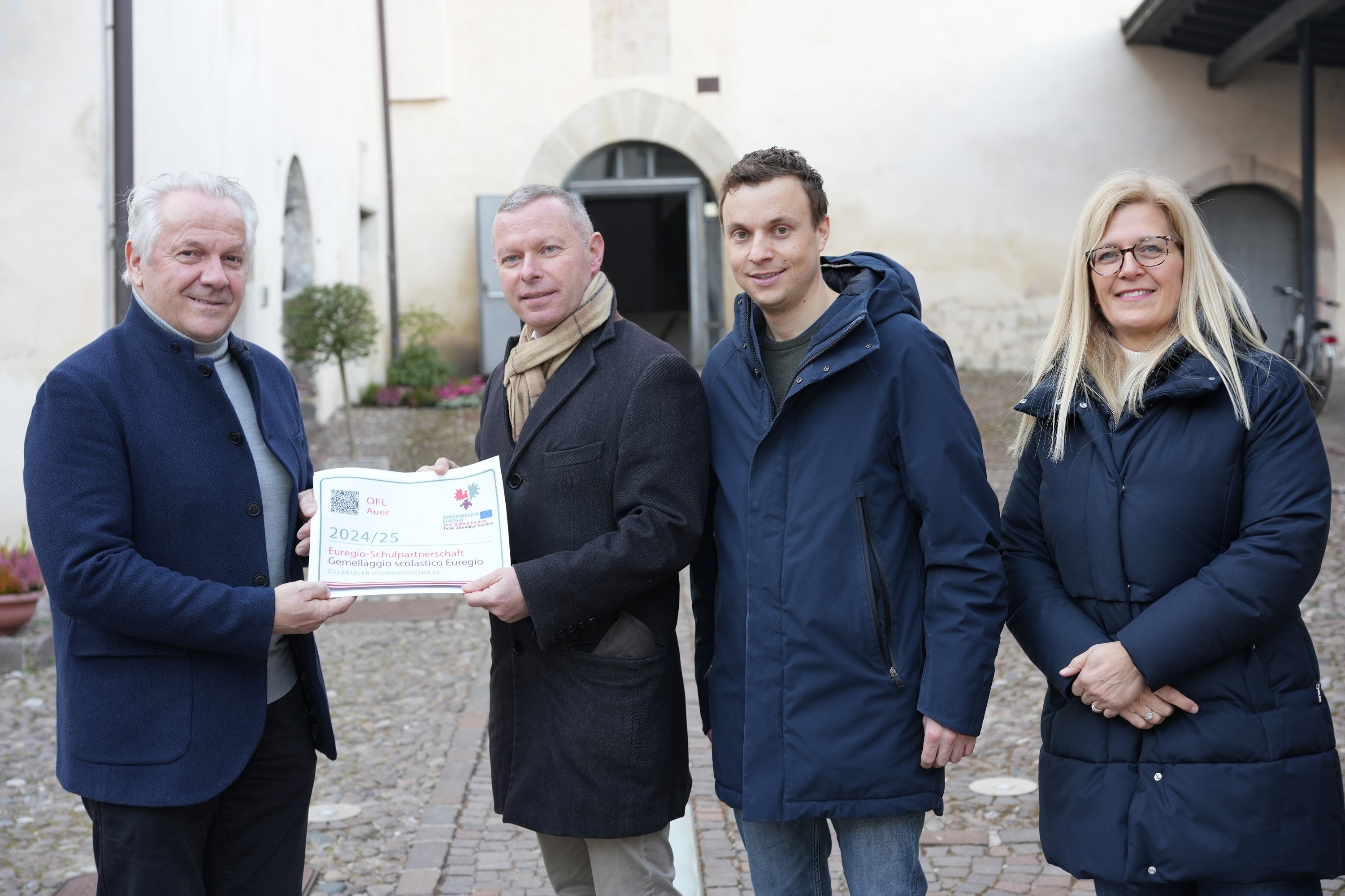 - Auch die Fachoberschule für Landwirtschaft Auer ist Teil einer Euregio-Schulpartnerschaft (mit den Zillertaler Tourismusschulen). Im Bild (v.l.) Schuldirektor Christian Gallmetzer mit Euregio-Generalsekretär sowie Martin Nock und Elena Rado von der Fachoberschule für Landwirtschaft Auer. (Foto: Euregio) » [IMG 1 MB]