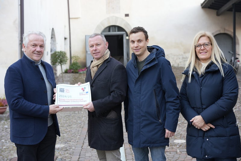 BOZEN (LPA). Insgesamt 16 Schulen aus dem gesamten Gebiet der Euregio Tirol-Südtirol-Trentino haben im Lauf des Schuljahrs 2024/25 eine aktive Zusammenarbeit gelebt und dafür in den vergangenen Woche die Auszeichnung als "Euregio-Schulpartnerschaft" erhalten. Vertretende der Euregio-Büros in Tirol, Südtirol und Trentino überbrachten die Anerkennung in Form eines Aufklebers, der an den Schulgebäuden angebracht werden kann.