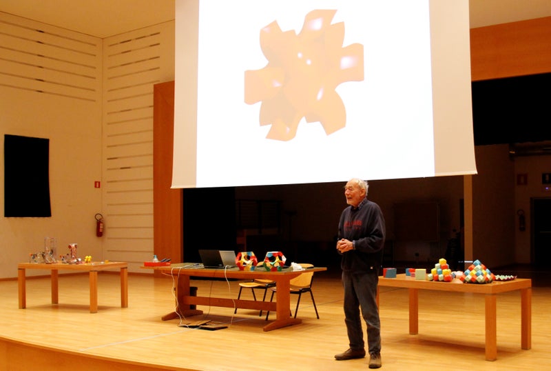 Am Vormittag ging es in zwei Referaten speziell um den Geometrieunterricht. Gastreferent war der Baseler Universitätsdozent Hans Walser, der auch Lehrbeauftragter für Geomatik (Modellierung und Analyse von räumlichen Daten), Kartografie und Vermessungswesen an der Eidgenössischen Technischen Hochschule Zürich ist. Er beschäftigte sich mit dem Thema, "halbe Würfel" zu konstruieren: "Ein Würfel kann mit Zirkel und Lineal nicht in einen volumenmäßig halb so großen Würfel verwandelt werden", erklärte Walser. Allerdings gebe es eine Vielzahl von einfach zu konstruierenden Figuren, die das Würfelvolumen halbieren. "Dabei spielen Symmetrieübungen eine wichtige Rolle: Mit diesen Figuren kann der Raum lückenlos und überlappungsfrei ausgefüllt werden", sagte Walser. Das Thema des zweiten Hauptreferats war hingegen das Auf- und Abwickeln von geometrischen Körpern. In diesem Zusammenhang ging es unter anderem um die Diskussion zum Begriff Netz und um mechanische Modelle.