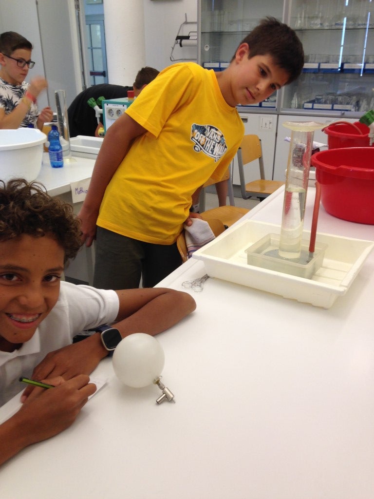 - Naturwissenschaftliche Experimente standen beim Workshop "Gib Gas" auf dem Programm: Schüler Nathan Peer war von den Ergebnissen begeistert: "Unglaublich, dass wir durch ein Experiment verstanden haben, dass im Weltall und luftleeren Raum keine Schallübertragung möglich ist. Alle Explosionen in 'Star Trek‘ kann man ja eigentlich gar nicht hören." (Foto: Hans Baldauf) » [IMG 136 kB]