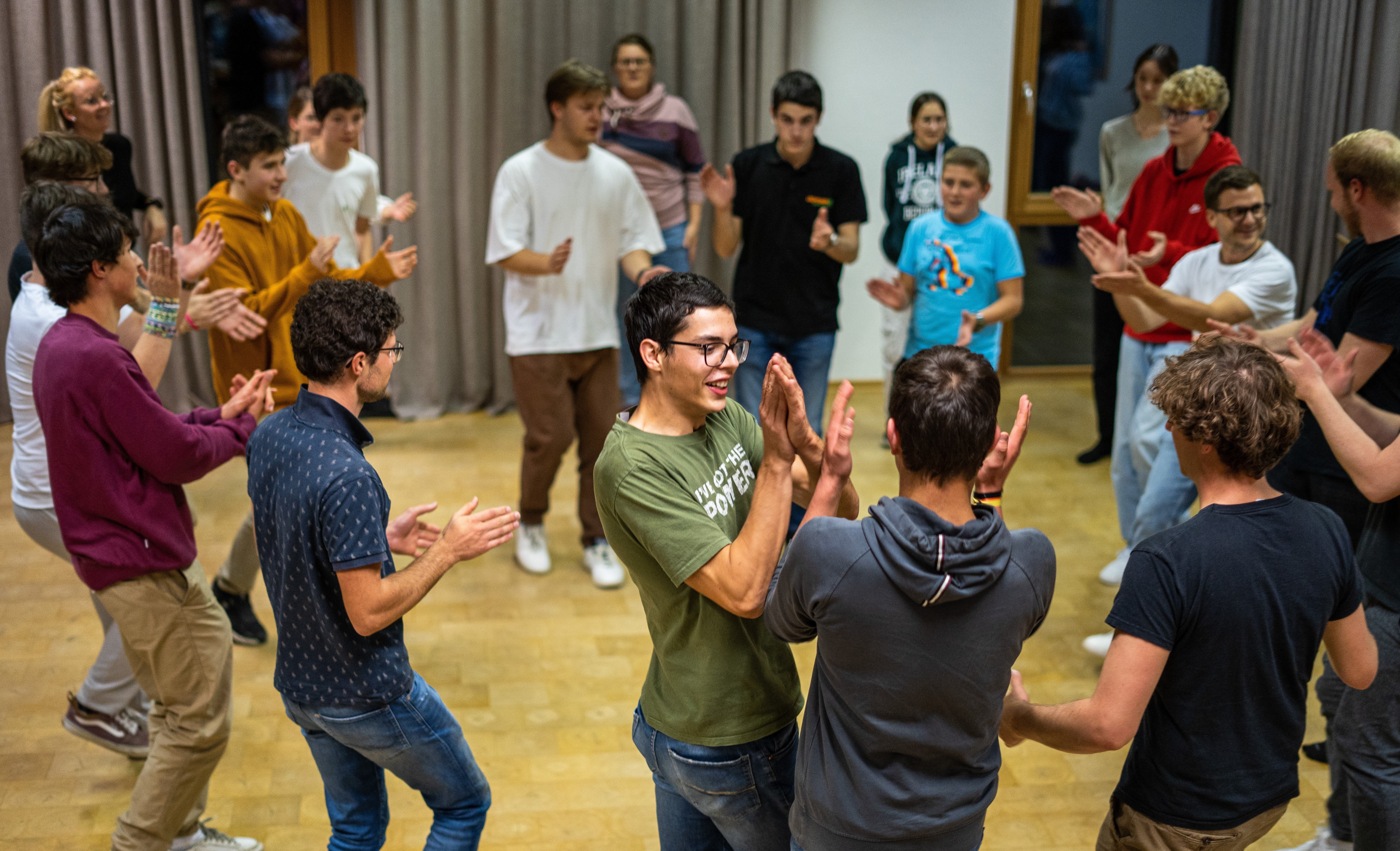 - Über 40 Teilnehmerinnen und Teilnehmer sind bei den "#VOL.JU" zusammengekommen, um gemeinsam zu musizieren, zu singen und zu tanzen. (Foto: Referat Volksmusik) » [IMG 7 MB]