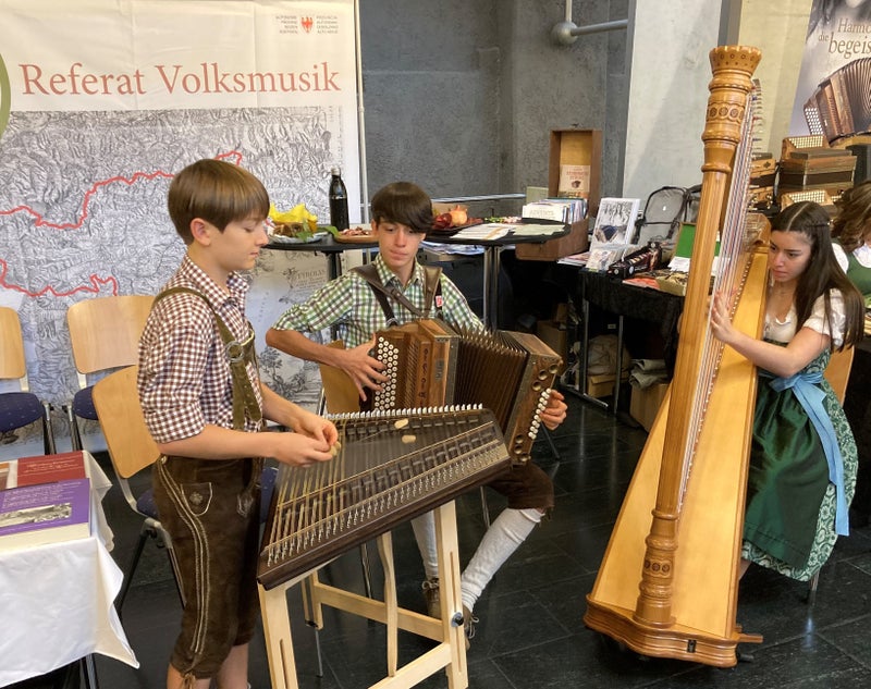 - Die Tuftwegmusi (Hannes, Lukas und Lea Niederfriniger) hat neben ihren Auftritten beim Wettbewerb und in Innsbrucks Innenstadt auch Zeit gefunden, am Infostand des Referates Volksmusik aufzuspielen. (Foto: Referat Volksmusik) » [IMG 2 MB]